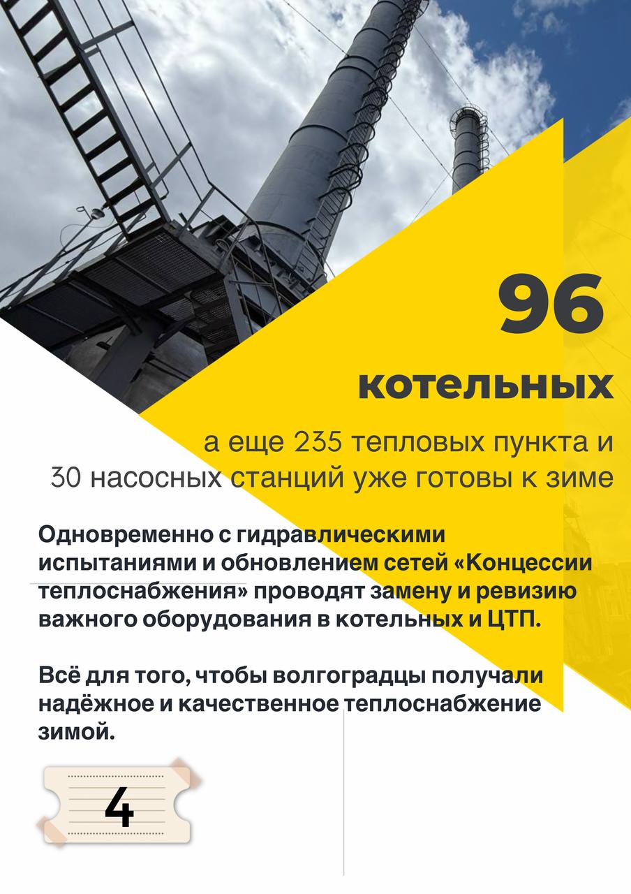 Компания «Концессии теплоснабжения» практически завершила подготовку тепловых сетей Волгограда к предстоящему отопительному сезону. Специалисты компании провели масштабные гидравлические испытания, в ходе которых было проверено более 800 километров трубопроводов.