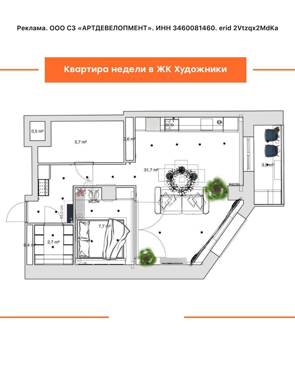 Евродвушка за 5 млн рублей с парковкой в подарок в ЖК «Художники»