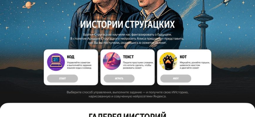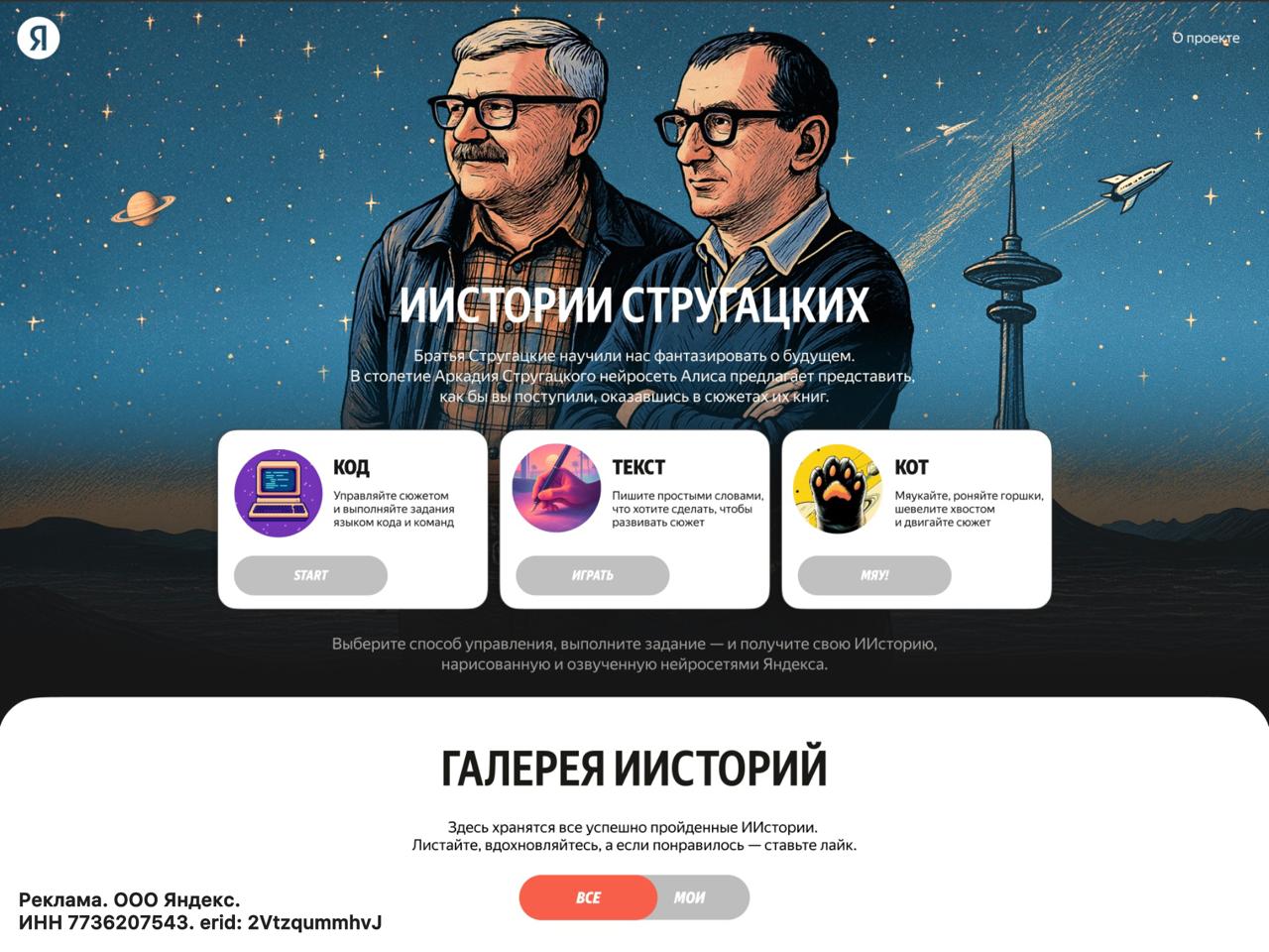 Для поклонников повести «Понедельник начинается в субботу» и других книг братьев Стругацких Яндекс запустил целую вселенную проектов. А еще это отличный повод познакомиться с культовыми писателями, если ещё не знакомы с их произведениями.