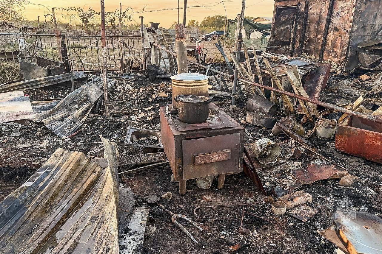 В хуторе Закутский Среднеахтубинского района огонь полностью уничтожил металлический вагончик, две деревянные хозяйственные постройки и две теплицы.