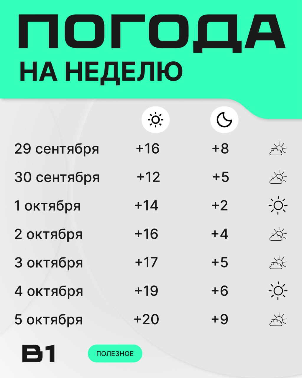 Температурный режим будет постепенно снижаться, что характерно для данного времени года. Ожидается переменная облачность с периодическими осадками в виде дождя. В ночные часы возможны первые заморозки в отдельных регионах.