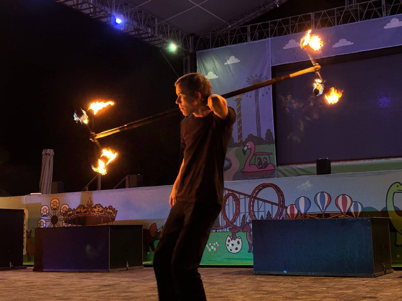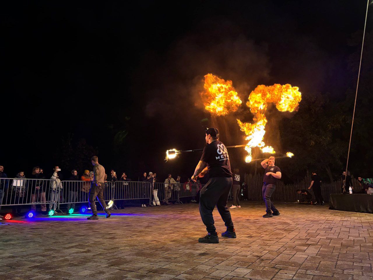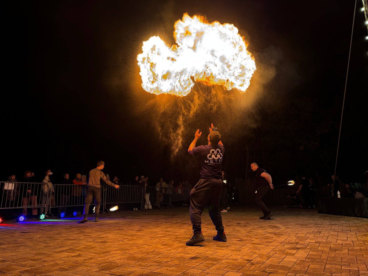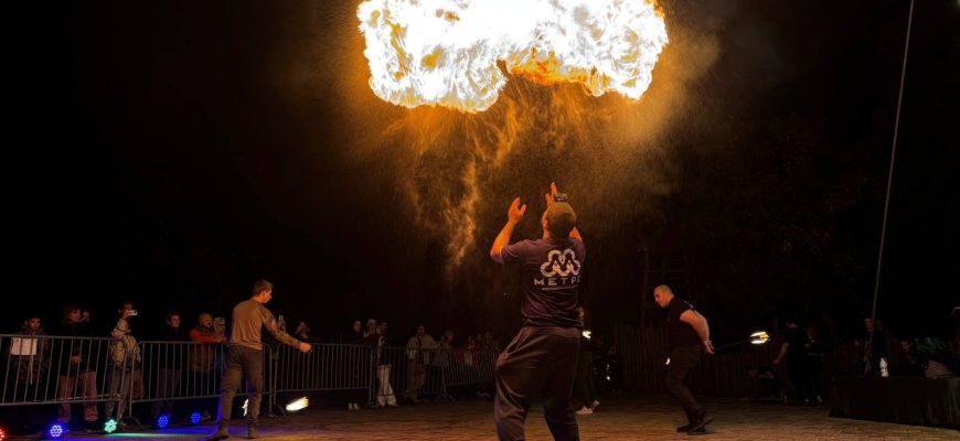 Пиротехническое шоу привлекло внимание многочисленных зрителей, собравшихся в парке. Яркие огненные композиции и спецэффекты создавали незабываемое зрелище для всех присутствующих.