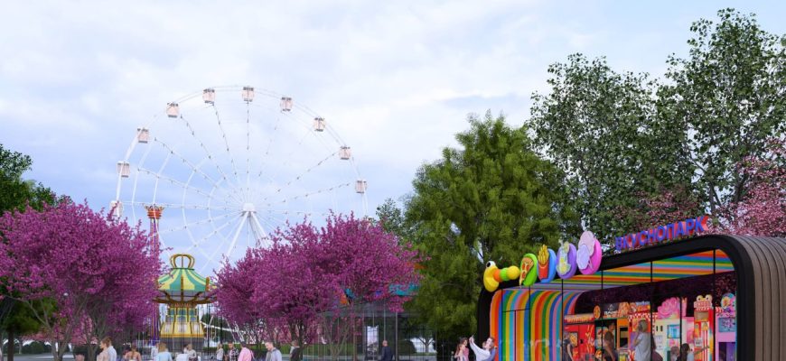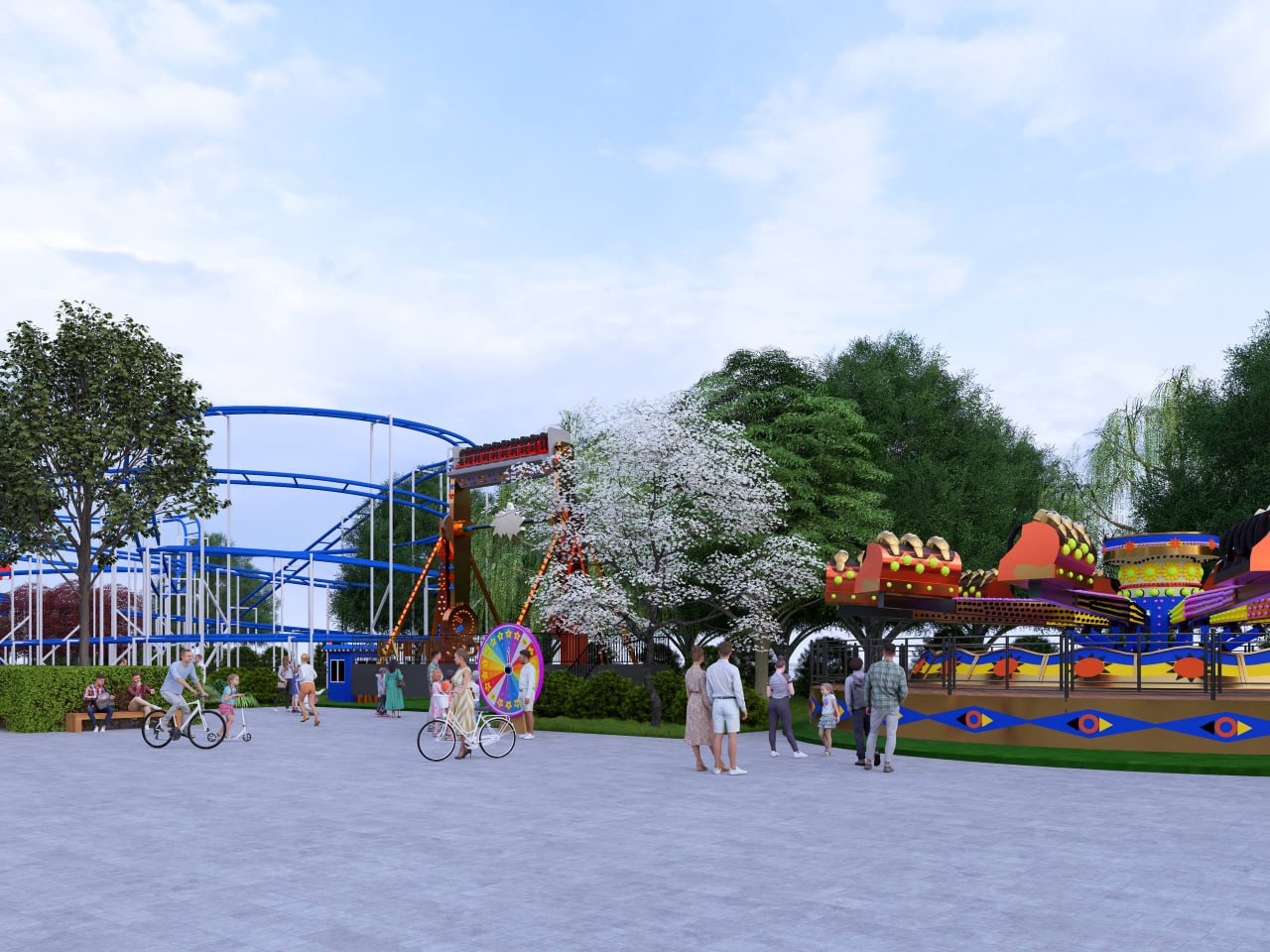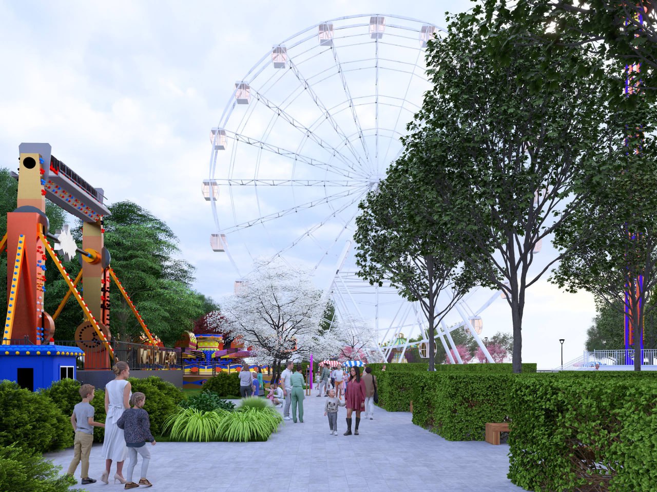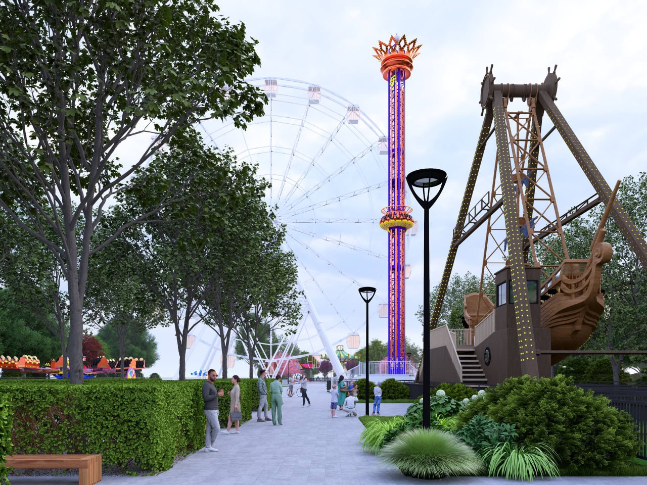 На площади в 1,6 Га появится 10 аттракционов и почетное место среди них займет то самое 50-метровое колесо обозрения. Еще здесь будут новые детские и семейные аттракционы: Диско, Корабль, Качели, Прыгающие машины, Башня, автодром, цепочная карусель и другие увеселительные забавы.