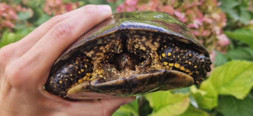 Житель области совершил необычную находку в собственном саду, обнаружив там взрослую болотную черепаху внушительных размеров. Особенность ситуации заключалась в том, что поблизости не было никаких водоемов, что делало появление рептилии в этом месте загадочным.